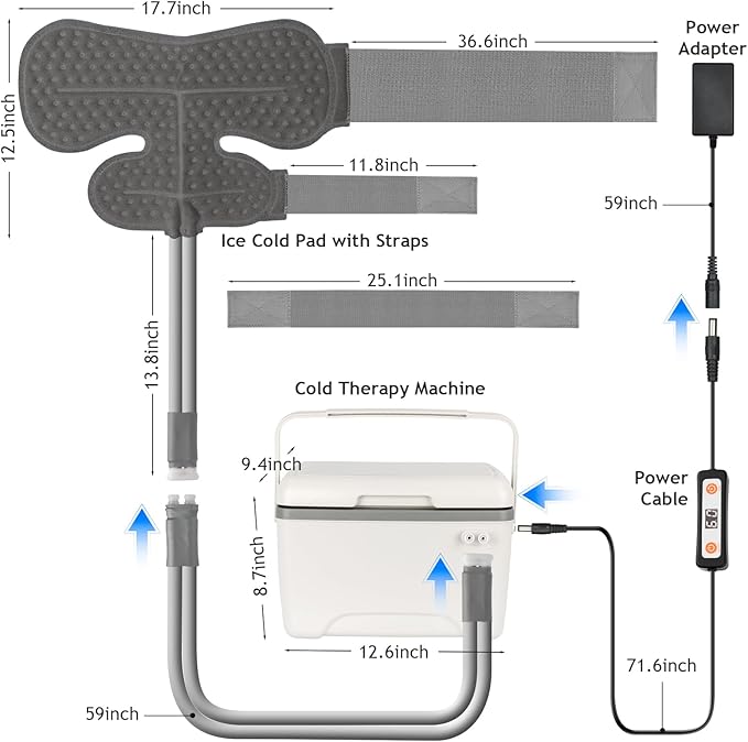 - Ergonomic Shoulder Ice Pack: Cold therapy machine with upgraded pads (17.7''*12.5'')and adjustable straps. Contoured shoulder ice wrap (20% wider than other cold therapy systems) securely around post-surgery bandages, while elastic straps prevent slippage
