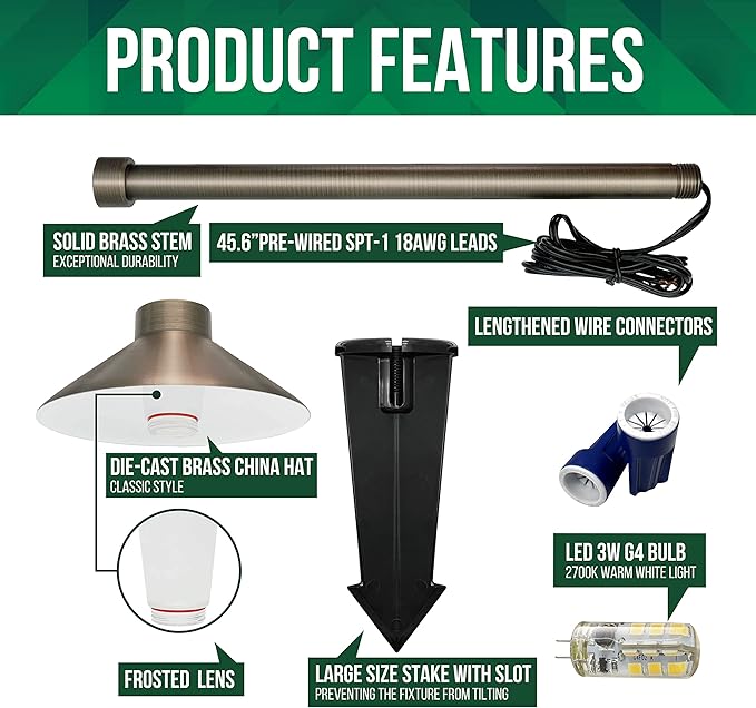 - ✔Die-cast brass construction: This brass landscape light is constructed of solid brass for durability and beauty. There will be natural patina over the surface of the brass housing overtime, helping the lights blend into your landscape.