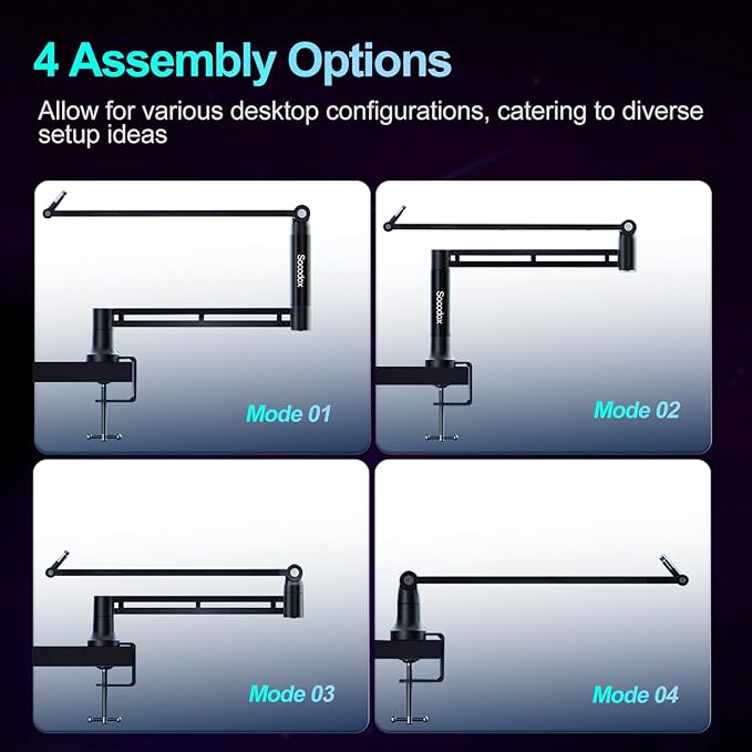 - Flexible Installation: Adapts to various desk setups with four installation options; designed for live streaming, gaming, podcasting, and radio