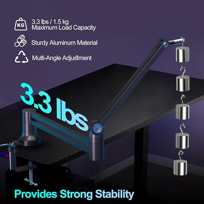 - Sturdy Support: Constructed from durable aluminum alloy; supports heavy microphones up to 3.3 lbs without wobbling