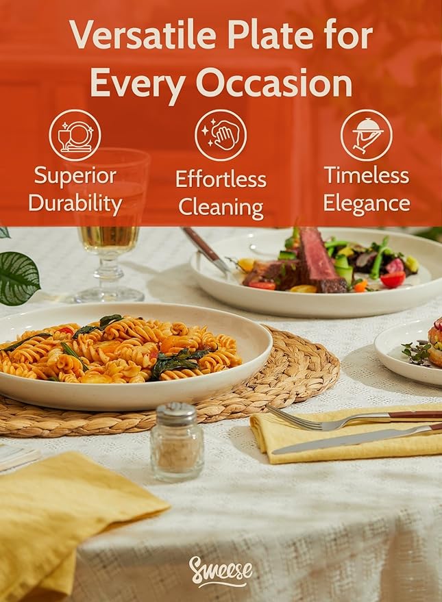 - KEEP MEALS TIDY - 7.4" plates with a clever lip edge prevent spills, ideal for desserts to appetizers with sauces.