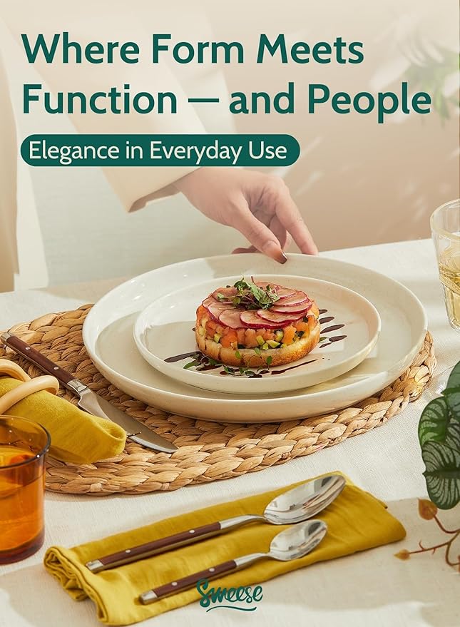 - ELEGANT DESIGN MEETS VERSATILITY - Minimalist round shape and dove gray color elevate your dining experience, perfect for various occasions.