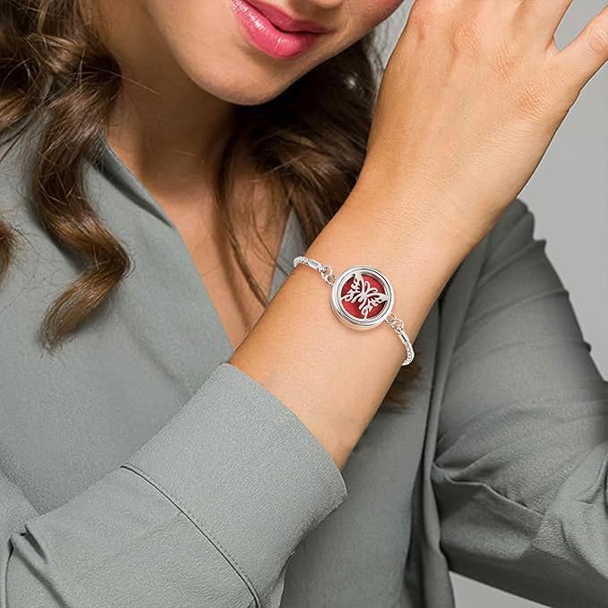 Essential Oil Diffuser Bracelet Aromatherapy Locket Adjustable Bracelet Stainless Steel Butterfly Bracelet with 10 Pcs Refill Pads for Women Girls