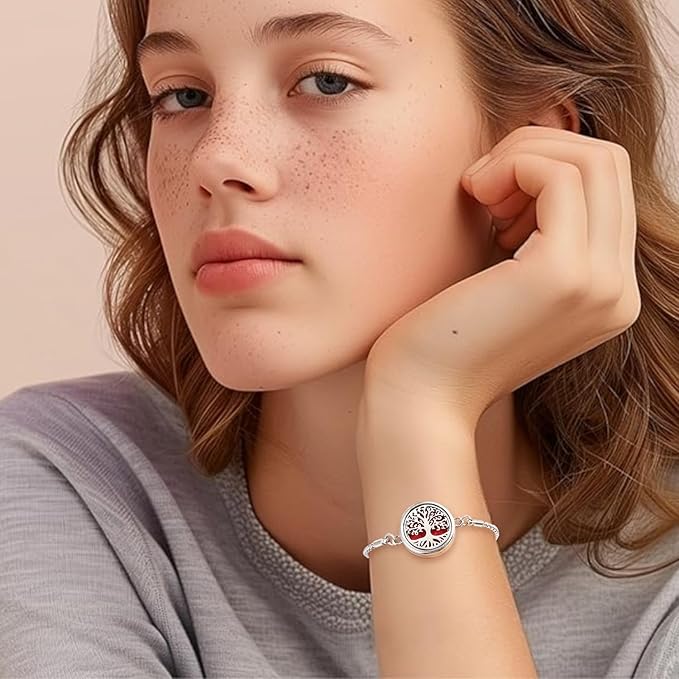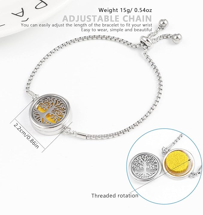 Essential Oil Diffuser Bracelet Aromatherapy Locket Adjustable Bracelet Stainless Steel Tree of Life Bracelet with 10 Pcs Refill Pads for Women Girls