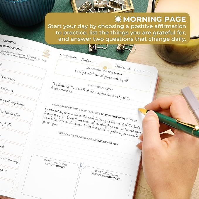 - SUPPORT A GRATEFUL & POSITIVE MINDSET – This 6-month daily gratitude journal helps you cultivate daily gratitude and practice positive affirmations, fostering a more mindful and positive outlook on life.