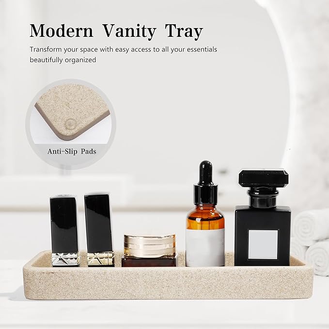 - 【Bathroom storage】: Enhance your bathroom decor or use items separately; the vanity tray transitions to the kitchen or laundry room.