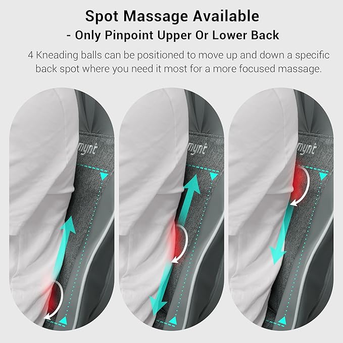 Mynt 2D & 3D Shiatsu Neck and Back Massager for Chair with 10 Deep Kneading Nodes, Adjustable Back Massage with Heat, Portable Massage Chair Pad (Gray)
