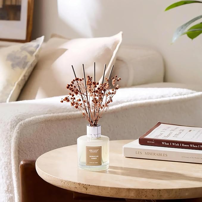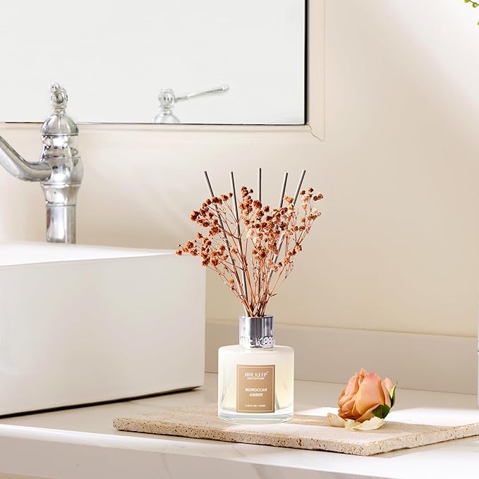 Airkeep Reed Diffuser Set,3.38 fl oz (100 ml) - Moroccan Amber Oil Diffusers with 8 Reed Sticks, Home Fragrance Reed Diffuser for Bathroom Shelf Decor
