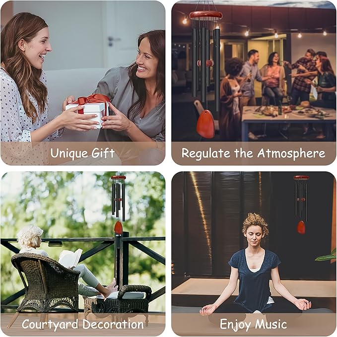 - Material: The 6 aluminum tubes range in length from 7.15 to 11.15 inches, with a difference of exactly 0.66 inches between each other, for simulate a rich tone rather than monotonous voice. It also features thick-walled tubes for even greater resonance. The anodic oxidation process improves the corrosion resistance, hardness and wear resistance of tubes. In addition, the top disc, the adjustable firing pin and the wind catcher are all made of hard-wearing, and non-cracking pine