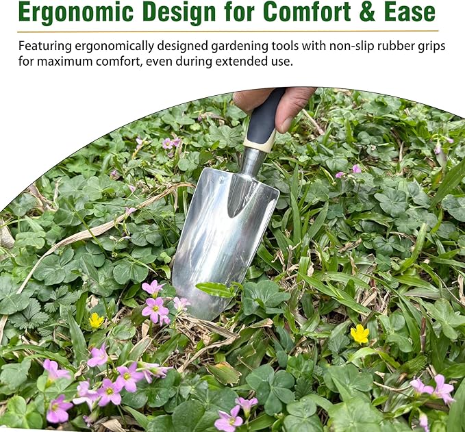- Premium Quality-- Our gardening tools are made from high-quality aluminum alloy, sturdy and wear-resistant, far surpassing other inferior tools. The ergonomic design with non-slip handles ensures safety and comfort during use, providing you with reliable quality for peace of mind.