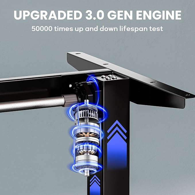 - The motor has been upgraded to a powerful one with a lifting capacity of up to 176 pounds. Our frame has undergone 50,000 times of raises up and down test, ensuring it can accompany you for nearly 14 years, even with daily use of up to 10 times