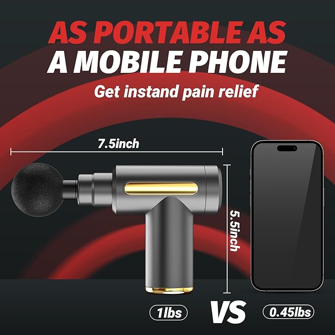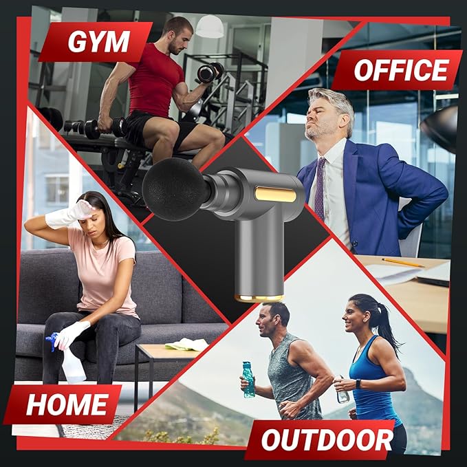 - 【Mini Massage Gun Deep Tissue】Our mini deep tissue massage gun with an ergonomic handle design provides full-body coverage, enhancing mobility and promoting faster recovery. Experience immediate pain relief, alleviate discomfort, and accelerate post-workout recovery. Say goodbye to tension and enjoy relief for your legs, neck, shoulder, back, knees and body.
