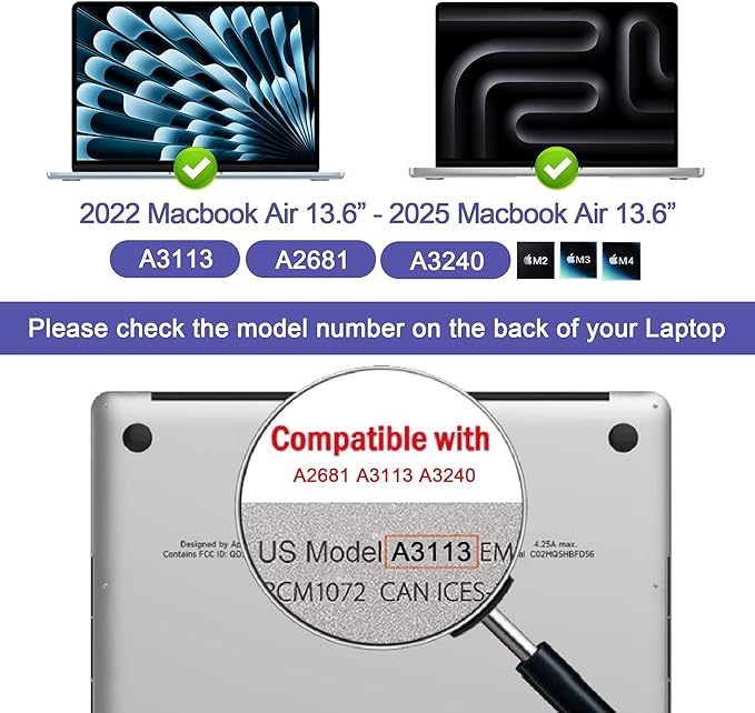 - Compatible Phone Models : MacBook Air 13.6 Inch (2022-2024, M2, M3)
