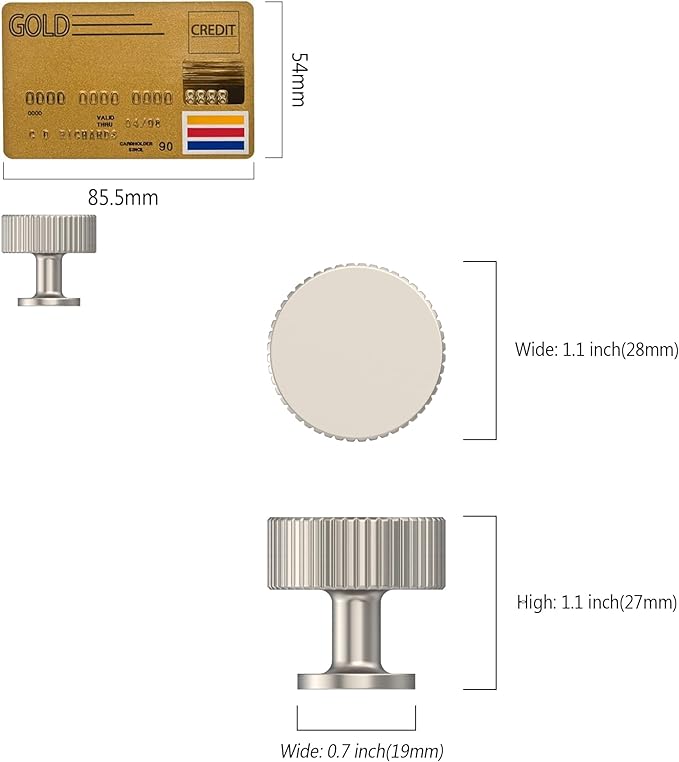- Measurement: Size of Knobs:Length: 1.1"(27MM);Width1.1"(28MM);Base Diameter: 0.7"(18.5MM);Height: 1.1"(27MM). Please check the Size of handles you require carefully before purchasing.