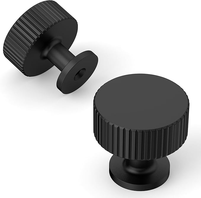 Amerdeco 10 Pack Matte Black Cabinet Knobs Single Hole Cabinet Pulls 1 Inch Drawer Knobs and Pulls for Bathroom Cabinets ZH0071