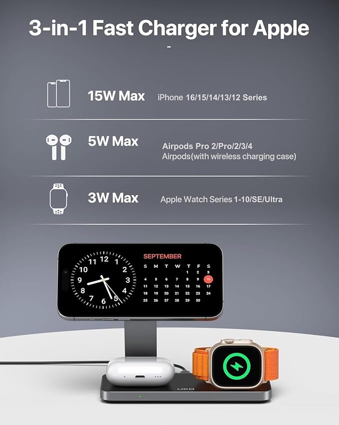 - Compatible Devices : 【For iPhone】: iPhone 17/ Air/17 Pro/17 Pro Max/iPhone 16 / 16 Plus / 16 Pro / 16 Pro Max / iPhone 15 / 15 Plus / 15 Pro / 15 Pro Max / iPhone 14 / 14 Plus / 14 Pro / 14 Pro Max / iPhone 13 / 13 mini / 13 Pro / 13 Pro Max / iPhone 12 / 12 mini / 12 Pro / 12 Pro MaxiPhone 16 / 16 Plus / 16 Pro / 16 Pro Max / iPhone 15 / 15 Plus / 15 Pro / 15 Pro Max / iPhone 14 / 14 Plus / 14 Pro / 14 Pro Max / iPhone 13 / 13 mini / 13 Pro / 13 Pro Max / iPhone 12 / 12 mini / 12 Pro / 12 Pro Max,【For Apple Watch】: for iWatch S11/S10/9/ 8 / 7 / 6 / 5 / 4 / 3 / 2 / SE / Ultra 3 2(Note: Only for Apple Watch, not for Samsung or other Watch); 【For Airpods】: AirPods 2 / 3 / Pro / Pro 3 2 (Note: Airpods 2/3 require wireless charging case) 【For iPhone】: iPhone 17/ Air/17 Pro/17 Pro Max/iPhone 16 / 16 Plus / 16 Pro / 16 Pro Max / iPhone 15 / 15 Plus / 15 Pro / 15 Pro Max / iPhone 14 / 14 Plus / 14 Pro / 14 Pro Max / iPhone 13 / 13 mini / 13 Pro / 13 Pro Max / iPhone 12… See more