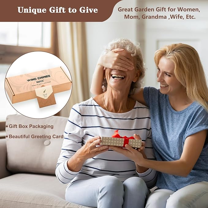 - Perfect Gift Choice: Each wind chime is packed in a beautiful gift box, and a blank greeting card is also included for you to write your own blessings. Whether it is a retirement gift, a new home gift, a birthday gift or a Christmas gift, this wind chime is the best choice. It has a beautiful meaning and is a thoughtful choice for giving to relatives and friends.