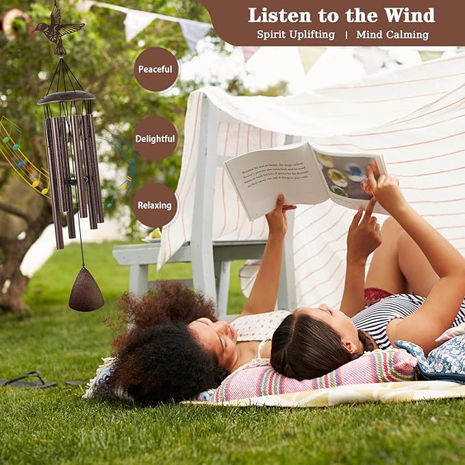Wind Chimes, 37" Hummingbird Wind Chimes for Outside Garden Patio Yard Decor, Hummingbird Gifts for Mom Women Grandma Wife, Deep Tone Windchimes for Christmas, Mother's Day, Birthday