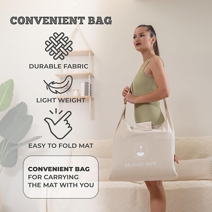 - 🍁 PREMIUM ECO MATERIALS: Handcrafted with organic cotton, breathable plant-based foam, and 6,210 medical-grade spikes, this mat is built to last. Non-toxic, hypoallergenic materials ensure it’s safe on skin. Includes a cotton cover sheet for beginners and a convenient carry bag for travel.