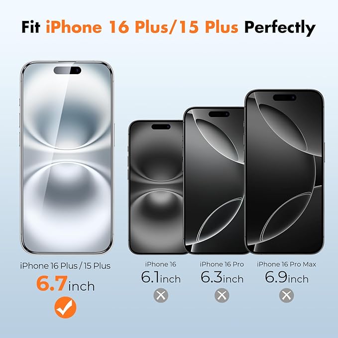 - HD Tempered Glass: to balance protection and usability, this iPhone 16 Plus/ iPhone 15 Plus screen protector is made of optical-grade high-transparency material, get a transparent protector with extreme hardness