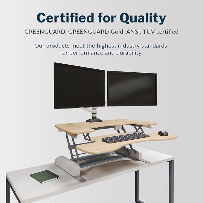 - Instant Dual-Monitor Workstation: Transform any surface into a sit-stand setup with a spacious 36” top tier designed to fit dual monitors and a dedicated lower tray for your keyboard, mouse, and other desk essentials