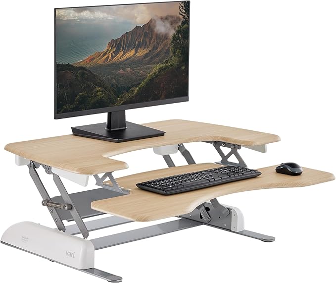 Vari VariDesk Pro Plus 36 Standing Desk Converter – 11 Height Settings + Spring Lift, 2 Tier Design, Keyboard Tray, Fits Desktops 36” Wide x 26.5" Deep – Delivers Fully Assembled (Light Wood)