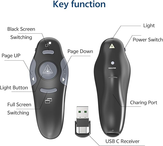 - Rechargeable Presentation Clicker: Built-in USB Type-C charging port for fast, eco-friendly charging. No more disposable batteries!