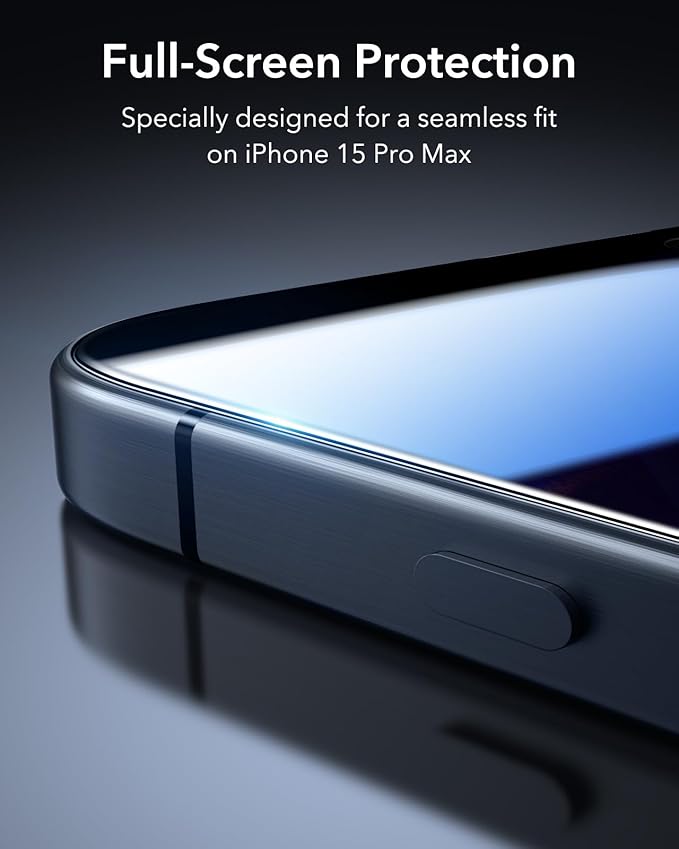 - In the Box: ESR Armorite screen protectors (3 pack, only for iPhone 15 Pro Max), UltraFit tray, cleaning kit, and manual