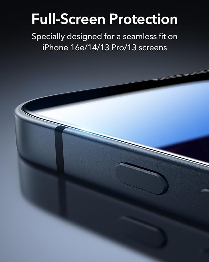 - In the Box: ESR Armorite screen protectors (3 pack, only for iPhone 16e/ iPhone 14/ iPhone 13/ iPhone 13 Pro), UltraFit tray, cleaning kit, and manual