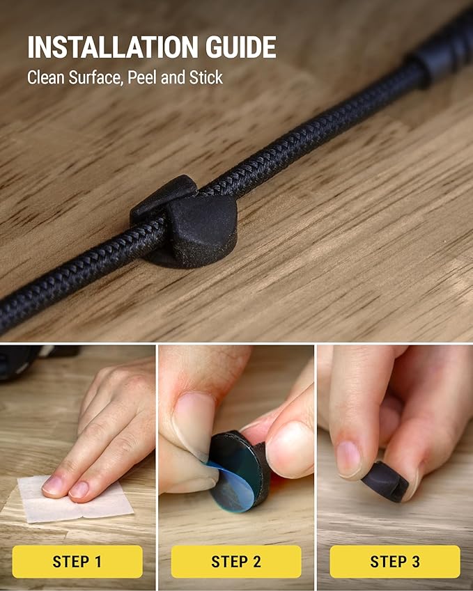 - Effortless Installation: Simply peel and stick the clips to most surfaces with the strong automotive-grade adhesive backing. Whether you need a cord organizer for desk or car phone charger holder, enjoy a quick, hassle-free setup that keeps your space organized instantly