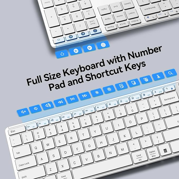 - 3-Device Connection: Seamlessly connect up to 3 devices with our Bluetooth 5.0 or 2.4Ghz USB receiver, offering a strong, reliable connection between the wireless keyboard and your laptop/computer/Mac.