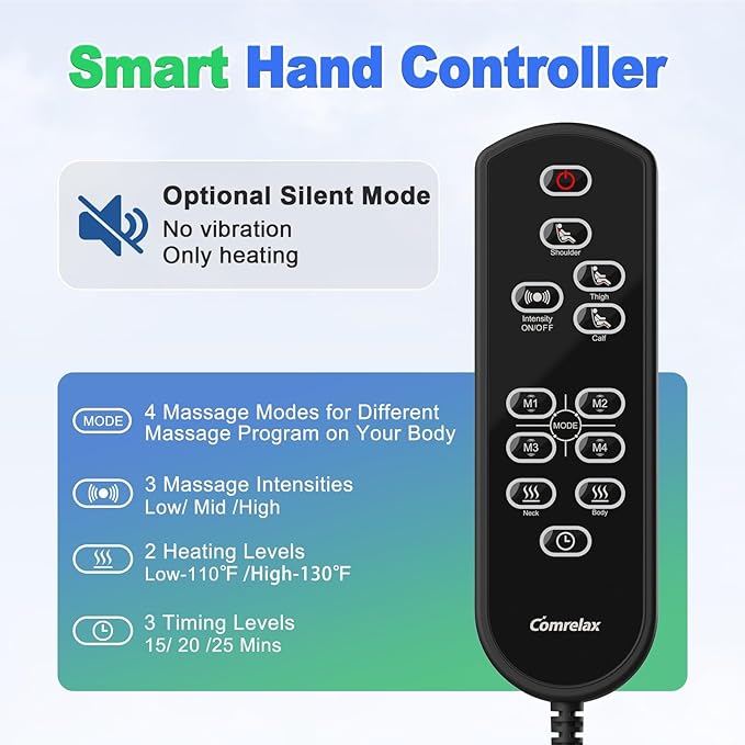 - 6-In-1 Full Body Massage Mat: This full body massage mat with heat, combines vibration massage, 3D waist traction, full body heating, it effectively massages your body, quickly relieving stress and fatigue.