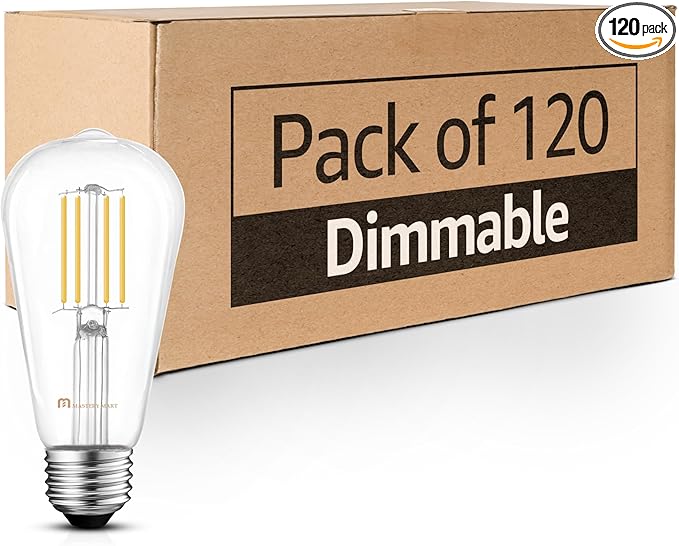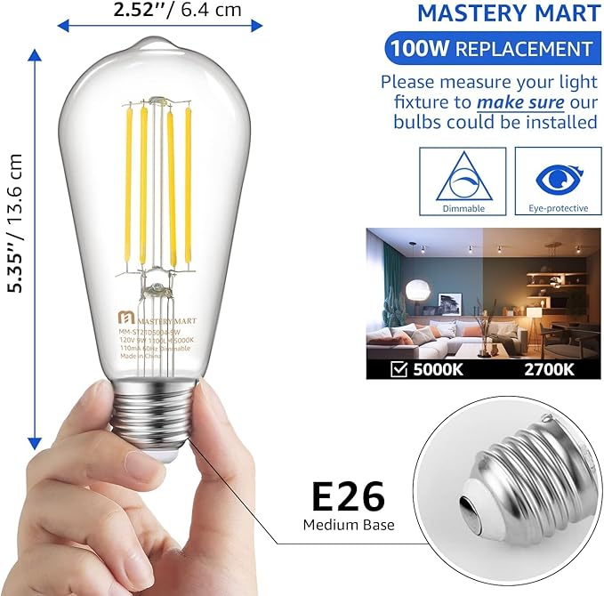 MASTERY MART 120 Pack 100 Watt Led Bulb, Edison Bulbs Dimmable Light Bulbs E26, 5000K Cool White Bright 9W 1100LM, ST21/ST64 Vintage Light Bulbs, UL Listed, Clear Glass, Decorative Light Bulb