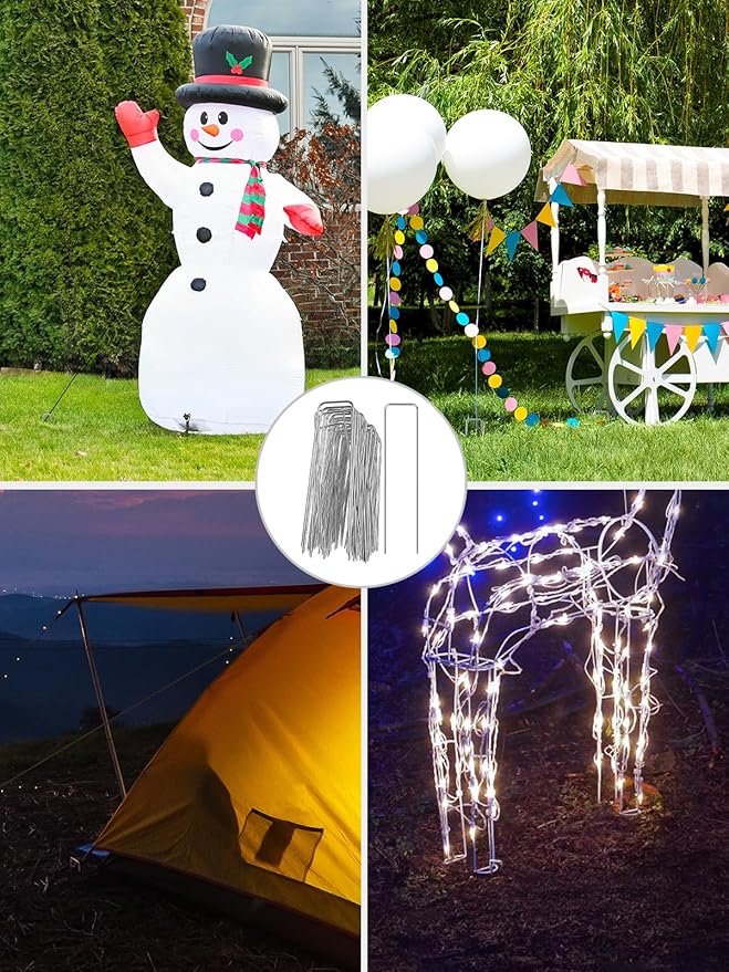 - GALVANIZED STEEL STAKES - Commercial pro grade heavy duty construction. These pins hold securely in strong winds. Anchor bird netting, holiday decorations for Christmas and other celebrations, floating row covers, and more. Made from premium quality materials, they are durable and can be reused multiple times