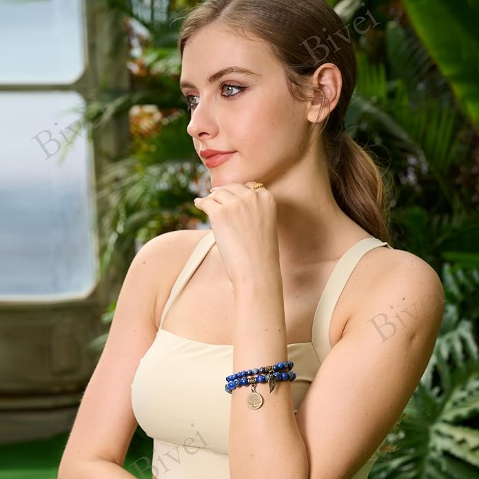 - Natural stone bracelets for women: Each beads in this fashion&beautiful bracelet are hand picked and strung on high quality elastic stretch cord to ensure the best quality. Durable and flexible.Each bracelets set with a bronze life tree and leaf charm.Great for daily wear, anniversary,party etc. Please note natural stones vary in colors. Each bead is unique. You will receive the similar item as picture shown.