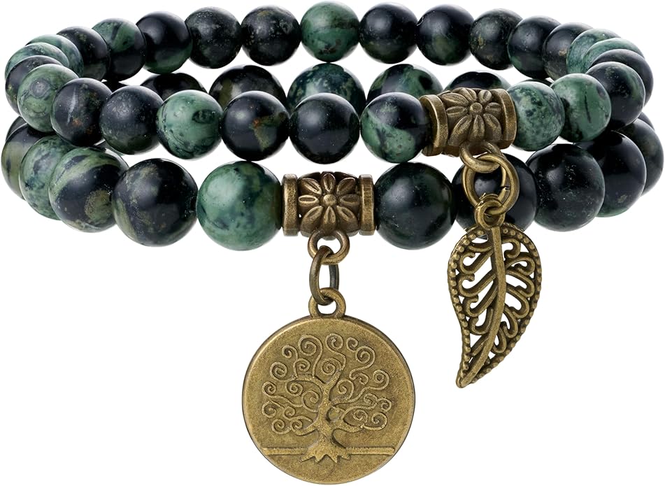 - Natural stone bracelets for women: Each beads in this fashion&beautiful bracelet are hand picked and strung on high quality elastic stretch cord to ensure the best quality. Durable and flexible.Each bracelets set with a bronze life tree and leaf charm.Great for daily wear, anniversary,party etc. Please note natural stones vary in colors. Each bead is unique. You will receive the similar item as picture shown.