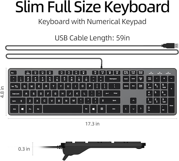 - 【Ultra Slim & Ergonomic Design】 The B.FRIEND silent wired keyboard features ultra-thin high-end scissor switch silent keys. It’s can accommodates most typing habits while taking up less space than traditional full-sized keyboards. The ultra slim wired keyboard has 17.3x4.8x0.3in(44*12*0.8cm).This ultra slim wired keyboard has ergonomic folding stand to provides optimal wrist support at a thoughtful angle, effectively reducing muscle strain during extended use, providing all-day typing comfort