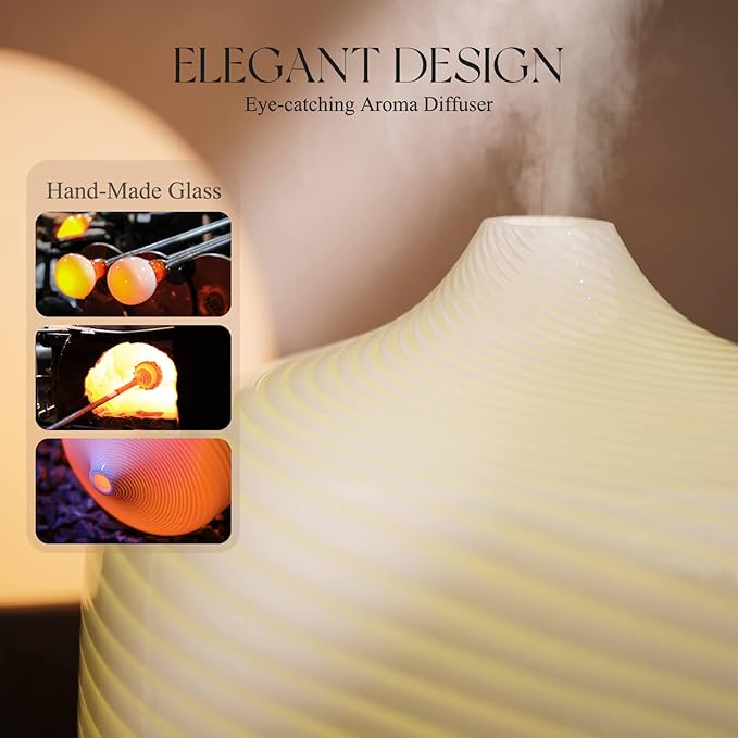 - UNIQUE ART DECOR - 500ml glass essential oil diffuser with star-shaped glass cover & wood grain base. Adds artistic harmony to your living space, perfect for bedrooms, living rooms, kids' rooms, studies, offices, & yoga studios. Enhances ambience