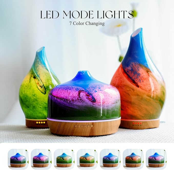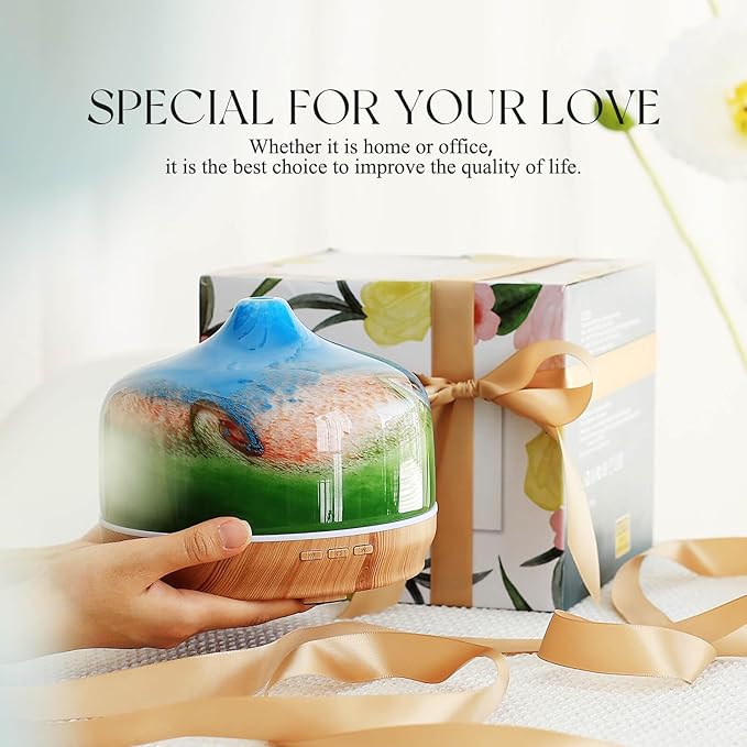 - UNIQUE ART DECOR - 500ml glass essential oil diffuser with star-shaped glass cover & wood grain base. Adds artistic harmony to your living space, perfect for bedrooms, living rooms, kids' rooms, studies, offices, & yoga studios. Enhances ambience