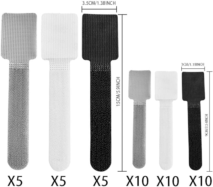 - Awesome Hook and Loop Wire/Cord Organizers: 3 Colors and 2 Sizes, easy to use, open, reopen, etc