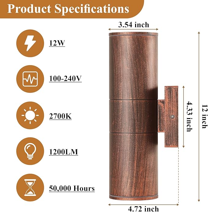 - 【 LED Light Source & No Bulbs Needed 】DAKAFUL up down lights outdoor is an integrated light fixture, 1200LM output, 12W and 2700K warm white lights, condensing COB screw light source, energy saving and power saving 【 IP65 Waterproof 】Our exterior wall lights made of an integrated design, good sealing, IP65 waterproof, snowproof , windproof and adapt to any weather conditions. Durable enough and perfect for outdoor use