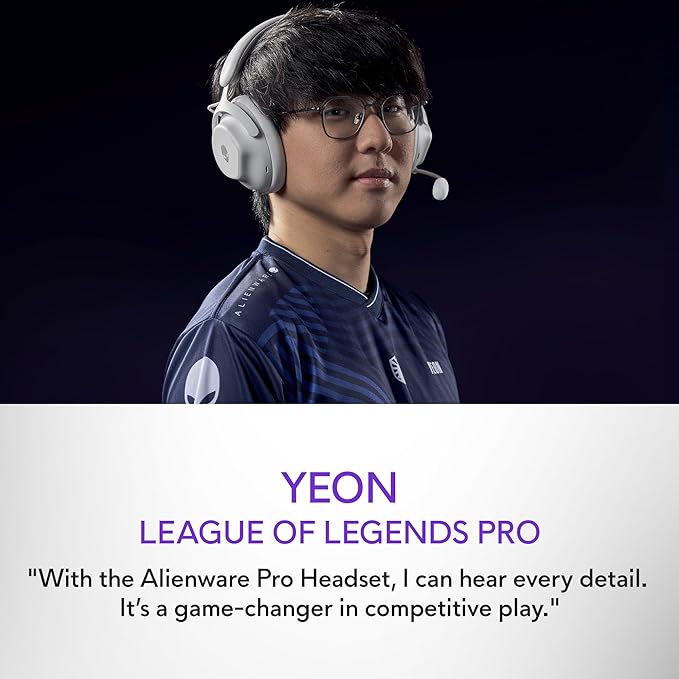 Alienware Pro Wireless Gaming Headset - Wired/Wireless, Bluetooth 5.3, 15 Minute Fast Charging, Audio Output 20 Hz, Battery Talk Time (ANC on) Up to 24 Hrs (Bluetooth), Lunar Light