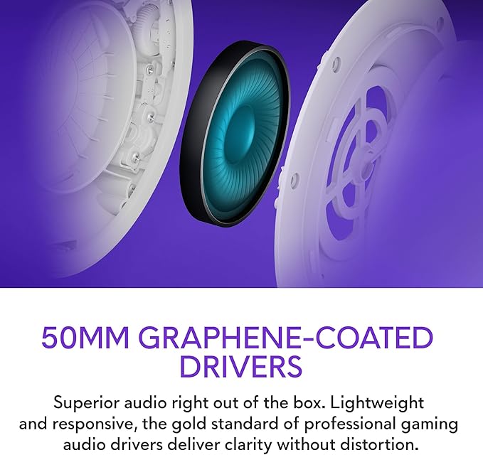 - 50mm Graphene-Coated Drivers: Superior audio right out of the box. Lightweight and responsive, the gold standard of professional gaming audio drivers deliver clarity without distortion.