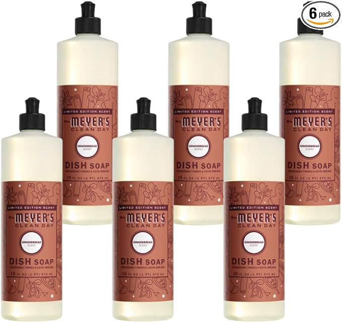 Mrs. MEYER'S CLEAN DAY Dish Soap, Gingerbread, 16 Fl Oz (Pack of 6)