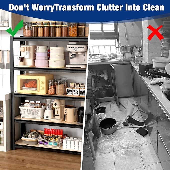 - 【Multi-Purpose Shelving Unit】Designed for versatility, thisshelvingfits garages, homes, warehouses, and offices. Whether for garage storage or general organization, it offers reliable, heavy-duty performance in any setting. The 48” extra-wide design offers ample storage space for larger items.