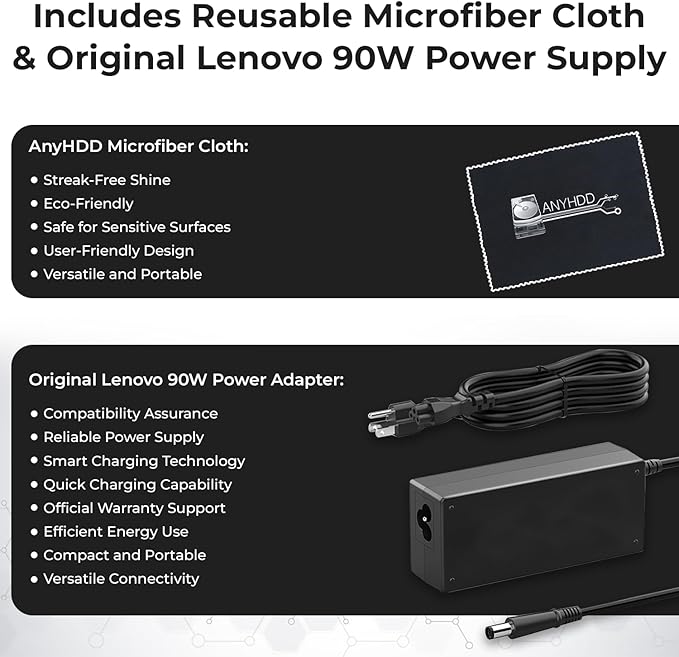 40AS0090US Gen 2 Lenovo Universal Docking Station Bundle Lenovo Docking Station for Laptop with 90W AC Power Adapter + HDMI Cable + USB Type-C Cable + DisplayPort Cable + Microfiber Cloth