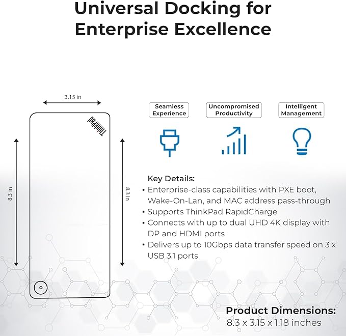 - [Efficient Power Delivery] - This lenovo thinkpad docking station includes a 135W AC adapter, ensuring stable power delivery to your devices while they're connected to the docking station