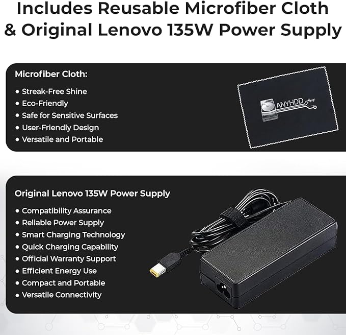 - [Package Includes] - 40AF0135US ThinkPad Hybrid USB-C with USB-A Dock, 135W AC Power adapter, USB-C Cable, HDMI Cable, Display Port Cable, Microfiber Cloth