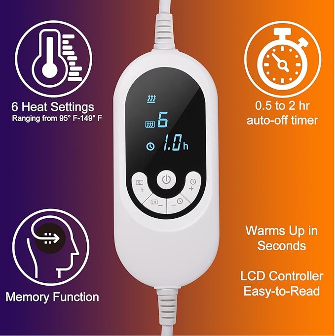 - 【 Reliable Safety Features】With UL/CE certification and overheating protection. Heating pad for neck and shoulders with fast heating and even heat distribution function, it offers rapid soothing and stays in a comfortable temperature range. (Note: When in standby, the controller displays Rd).