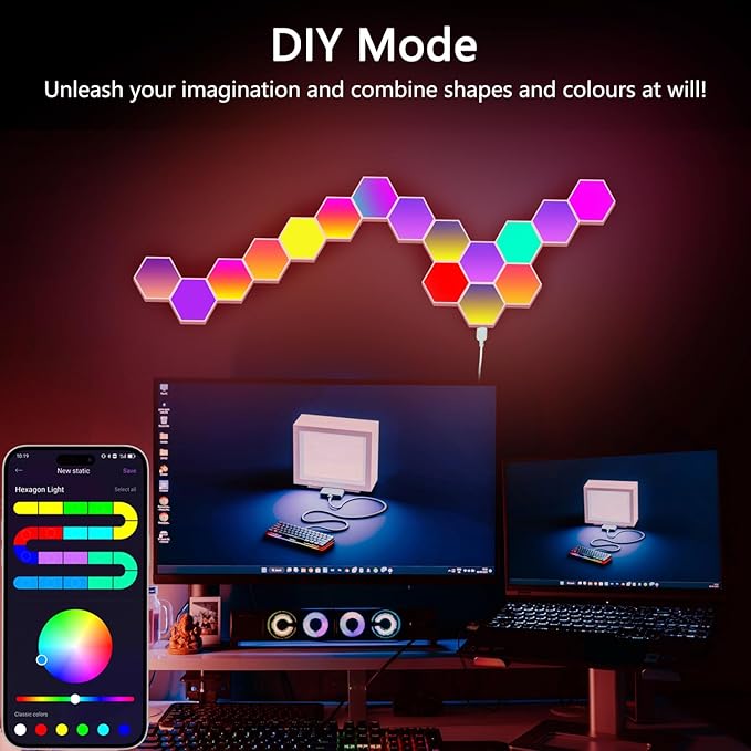 - Versatile Lighting: This 8-pack of hexagon light panels offers smart RGB LED lighting with app and remote control for customizable ambiance.